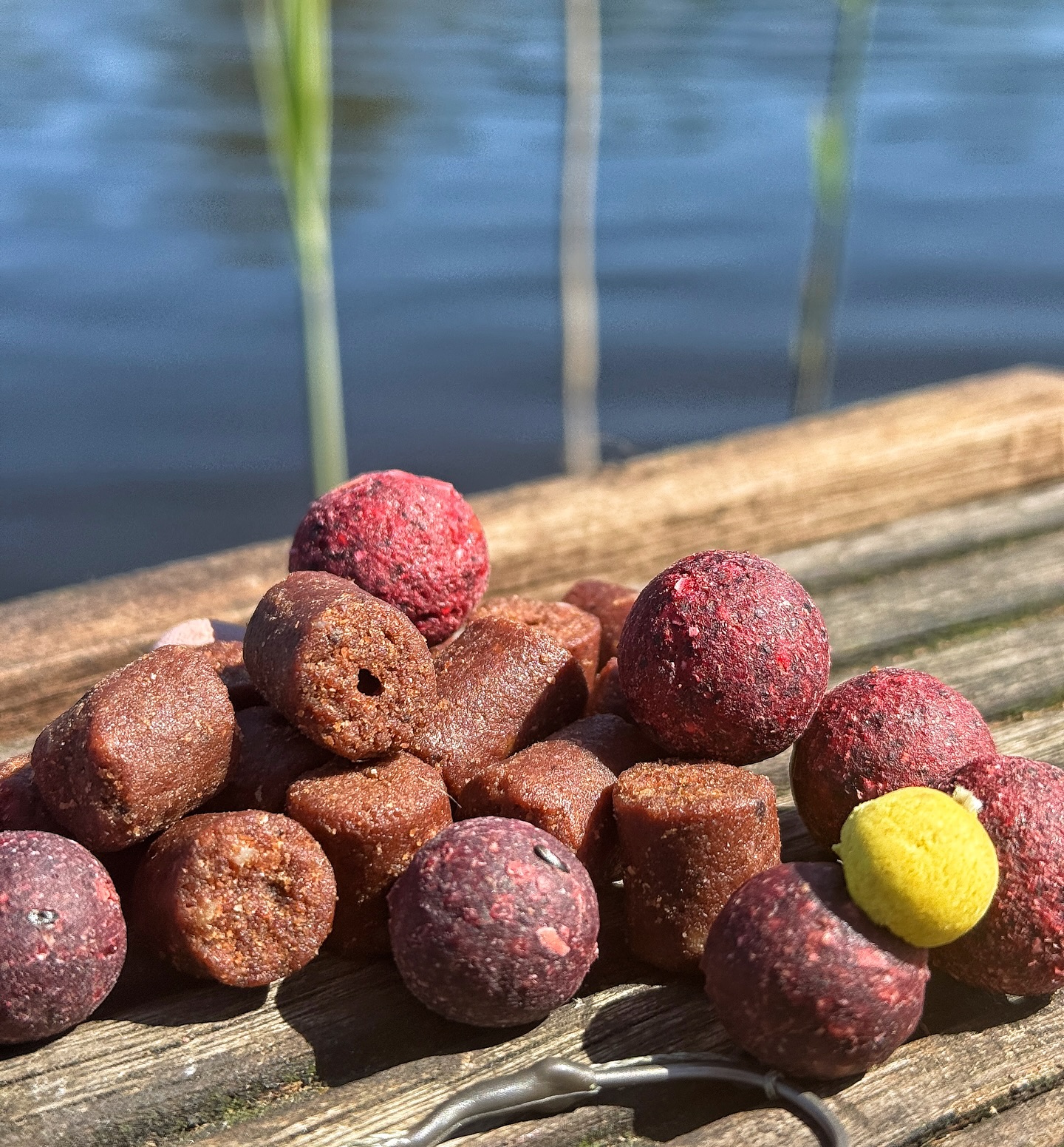 28-04-2025 - Keven geniesst die Sonnentage und freut sich auf den Sommer. Den Karpfen präsentierte er ein kleines Buffet aus Pellets, King Plum und Fruit Bomb Boilies.