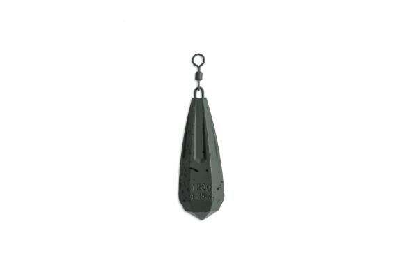 A long-distance casting lead in Mivardi’s unique design. The latest precision pressure-casting technology ensures perfect accuracy even in the smallest details and minimal weight variation. The aerodynamic shape allows casts to the longest distances. The computer-optimised body with slight side indentations emphasises not only aerodynamic purity but also directional stability. All of this is achieved without any external protrusions, fins, or other unsuitable elements that could negatively affect casting in crosswinds. The lead is fitted with a high-strength swivel with an enlarged eye.