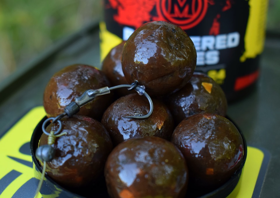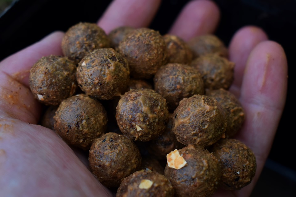I think it doesn't matter how many magic balls you have or what essence you mix it with, for me it's important to just choose the right place where the fish are at this time. As I mentioned before, if I know the fish are in a given spot, I have no problem casting it big. I use Monster Crab or Carp Goulash all year round, these are top picks for me. Mainly in the spring months, when the water is colder, Carp Goulash has proved to be very useful for me. Its composition is more spicy and works better in winter/spring. I start using the Monster Crab at the end of April when I know the water temperature is more promising and also after finding that it works perfectly before the fish spawn. To the middle boilie row, I add the top row of Sea boilie in a ratio of 1:3, both with Crab and Goulash.