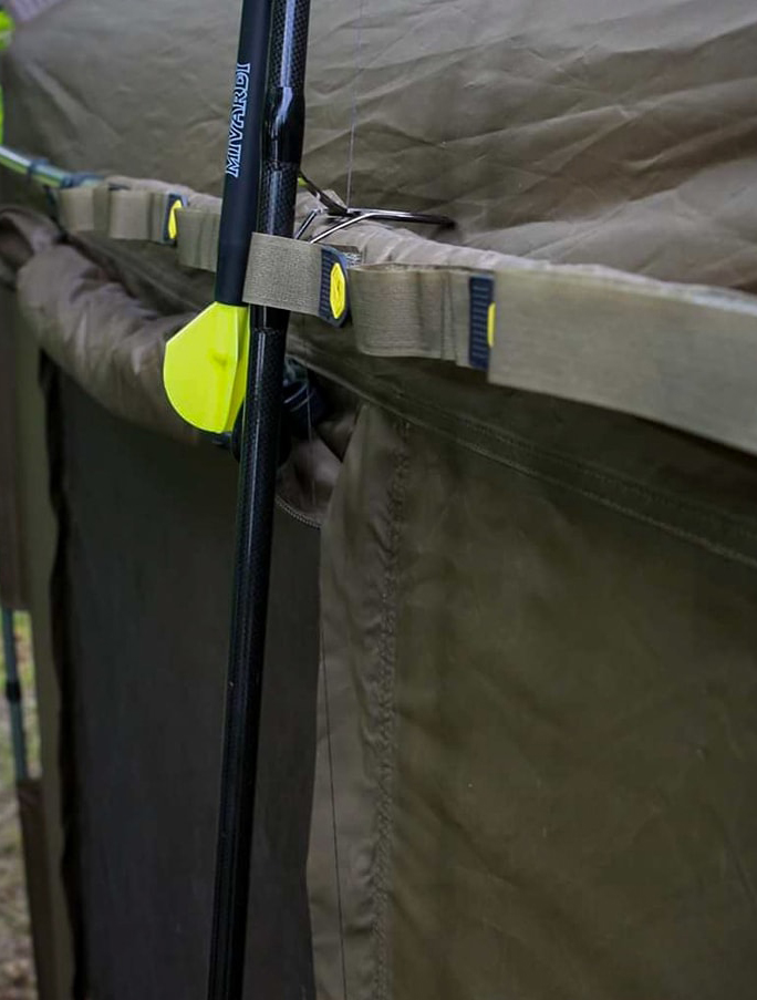 10-03-2025 - A multifunctional padded holder with six positions for securing rods, landing nets, and other accessories using Velcro straps. It is designed to be mounted on the side tension bars of the Entrix XL bivvy or the Base Station MK2 shelter.