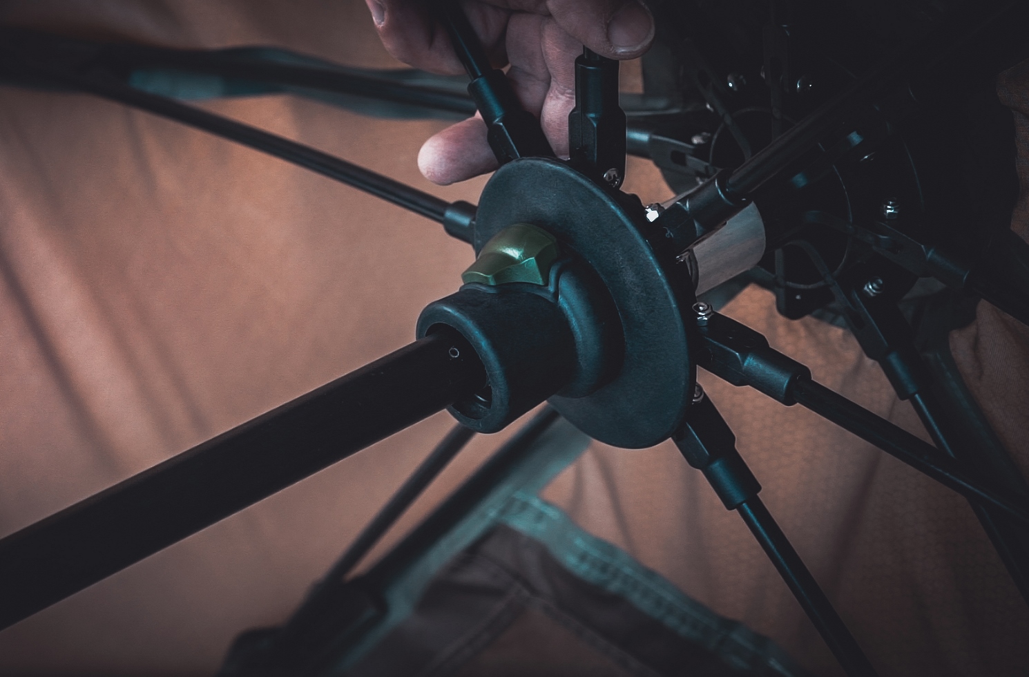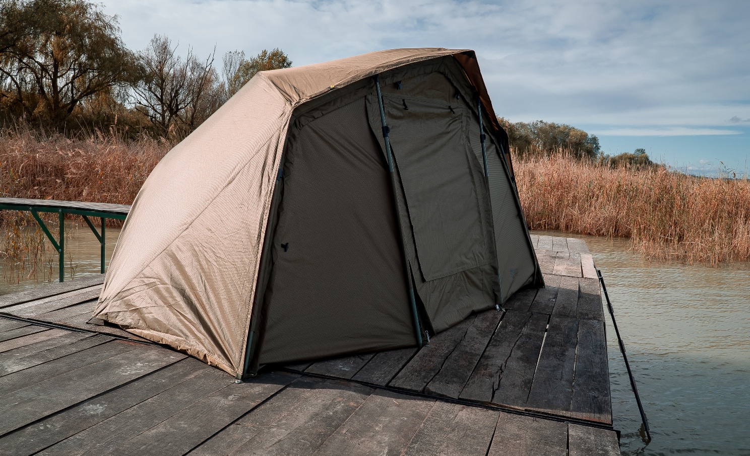 17-03-2025 - A meticulously crafted brolly by Mivardi, down to the last detail. It maintains the classic umbrella construction but incorporates a spatially efficient system of a central block and struts. This leads to maximising the space above your head when sitting on a bedchair. This brolly introduces a range of unique and innovative construction details that significantly increase internal space, enhance stability, and expedite setup and takedown. A crucial element is the extended two-piece rear ribs, which may or may not be collapsed during transport. Along with the optimized geometry of other ribs, it creates an extremely large internal space with an almost rectangular footprint. This allows the brolly to be used in combination with the largest bedchairs while still leaving enough space inside for a table and luggage. The front section is reinforced and stabilised by a two-piece fiberglass reinforcement with a uniquely designed fixing method. The brolly's construction above the entrance forms a visor that protects the doorway area from rain. The front window is designed as three-layered (mesh/transparent PVC/nylon cover). The entire front panel can be completely detached. The cover is made from M-TEC300 material with a hexagonal texture and features a water resistance of 8000mm and increased mechanical resistance. Four included storm poles are equipped with quick connectors for easy and fast attachment to the brolly's construction. They are also fitted with new Mivardi locks with extreme pressure, allowing for perfect tensioning of the cover. Brolly Entrix is standardly supplied with a complete set including a groundsheet and front panel.