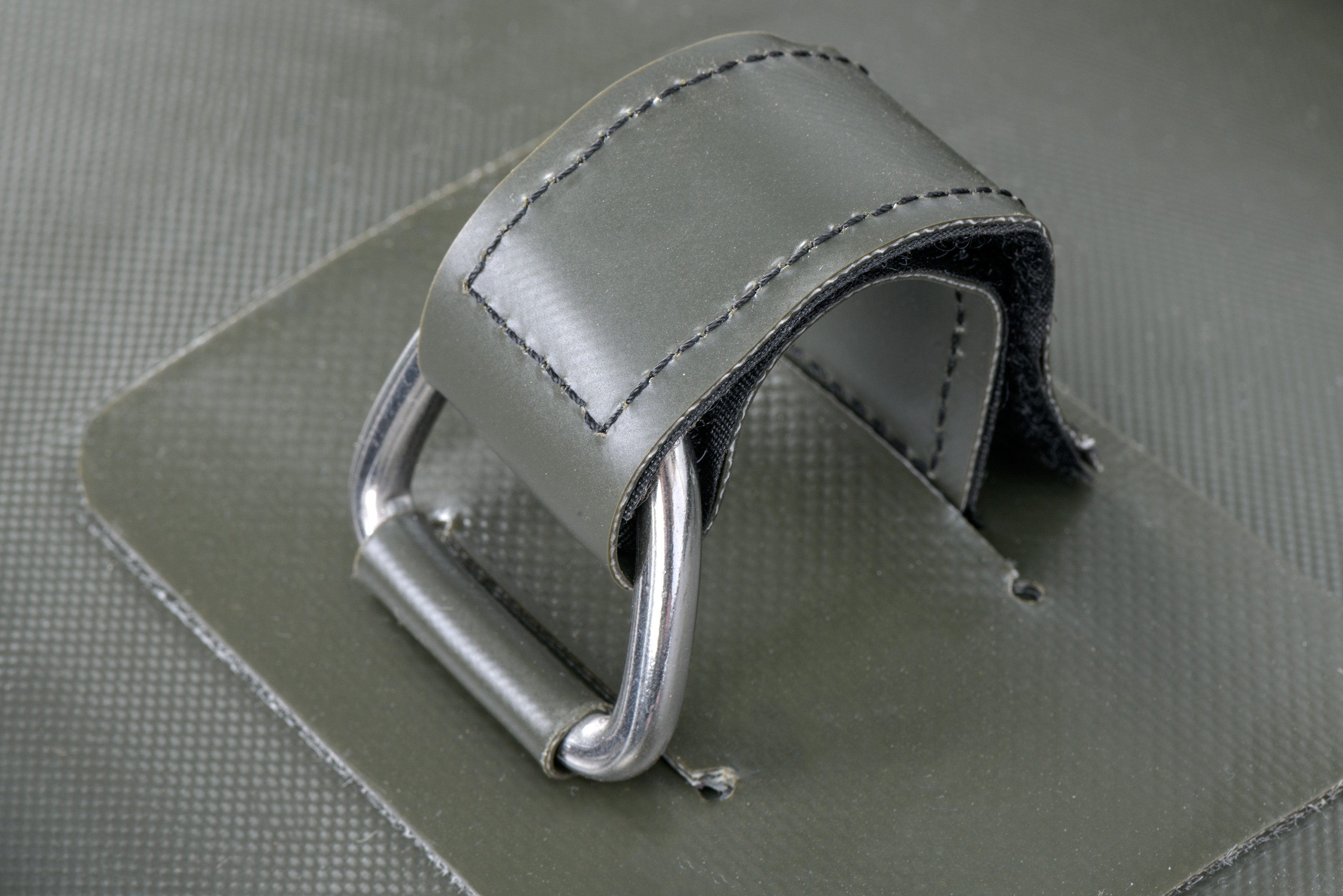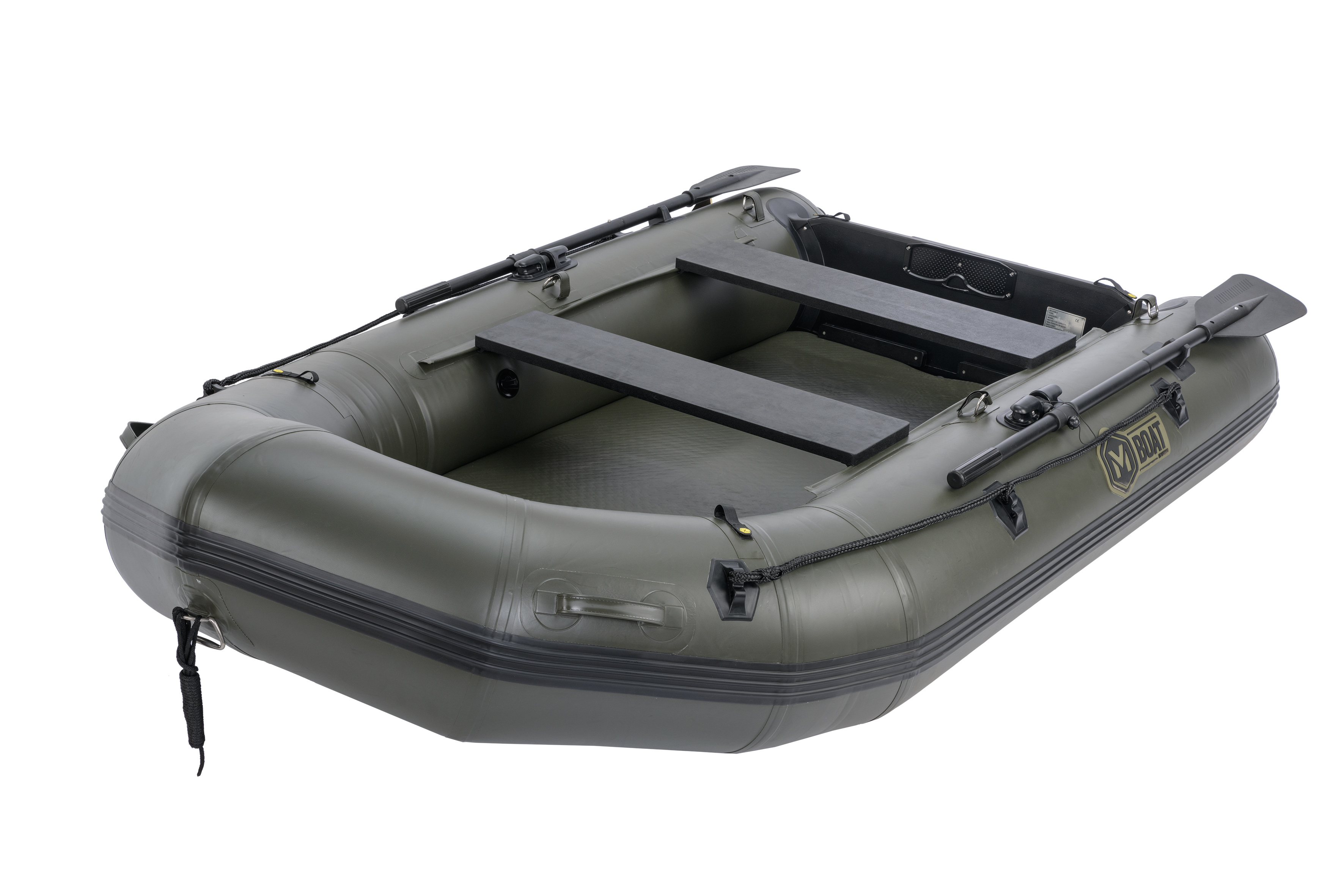 13-08-2024 - The second generation of M-BOAT AWB inflatable boats retains all the advantages and unique features of this model while adding a range of improvements. The above-standard width and specific shape of the boat ensure an extremely large internal space, which is always significantly larger than that of standard boats of the same length on the market. This is further enhanced by the specific design of the rear part of the pontoons, allowing the transom to be placed as close to the end of the pontoons as possible while maintaining their function in keeping the direction of travel. The significantly raised bow, along with the specially shaped front section, a robust inflatable keel running the entire length of the floor, and the specially designed transom, provide excellent hydrodynamic properties and directional stability. In practice, this means higher speed, easier handling, and lower energy consumption when powering the boat. The reinforced material of the pontoons increases resistance to punctures. The inflatable floor with a double tread layer is almost indestructible, and its green colour harmonises well with the boat's colouring and black oars and other accessories. Each boat is equipped with Velcro straps in the front section and on the transom. There is also a heavy duty accessory strap in the middle section.