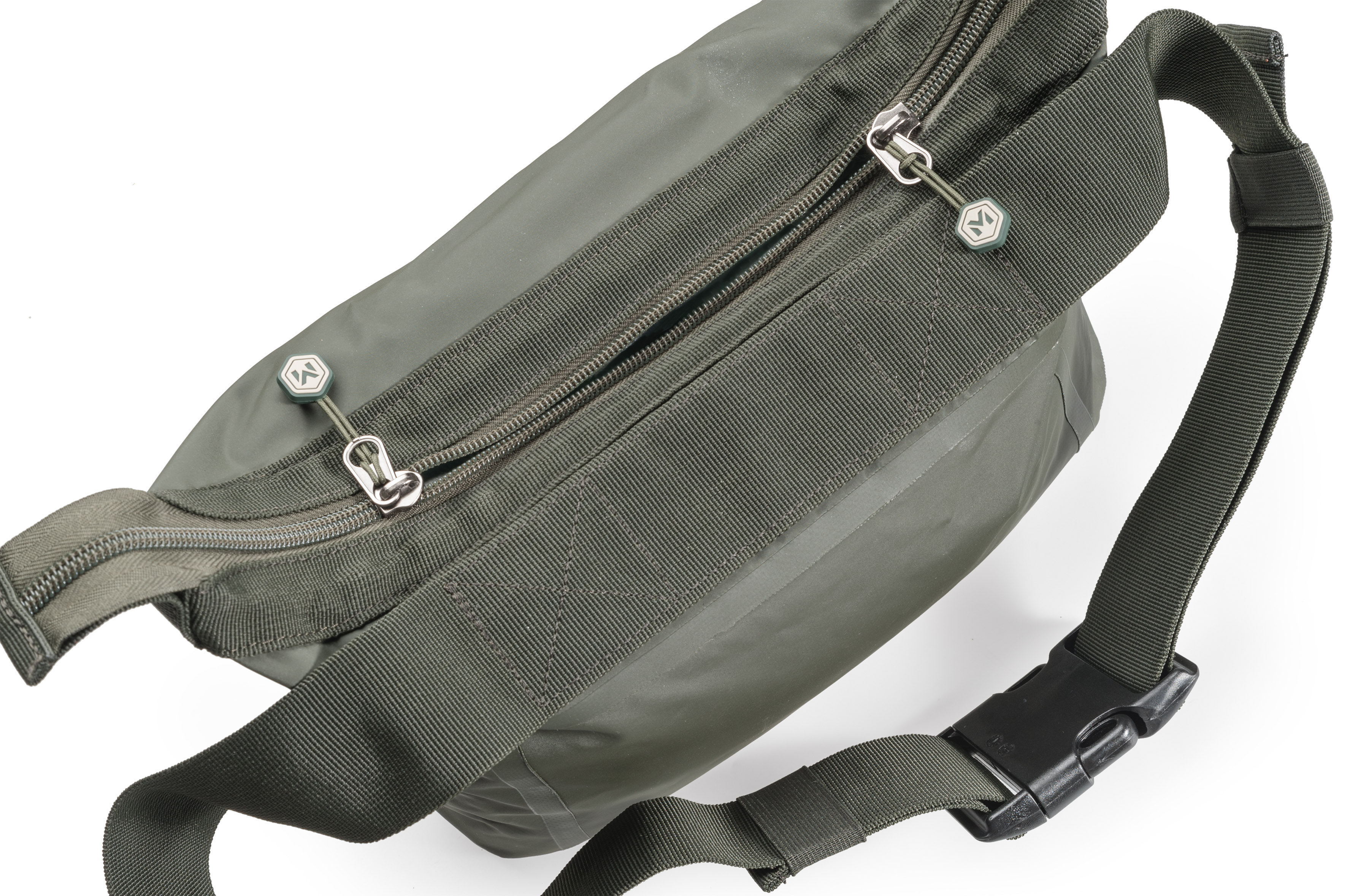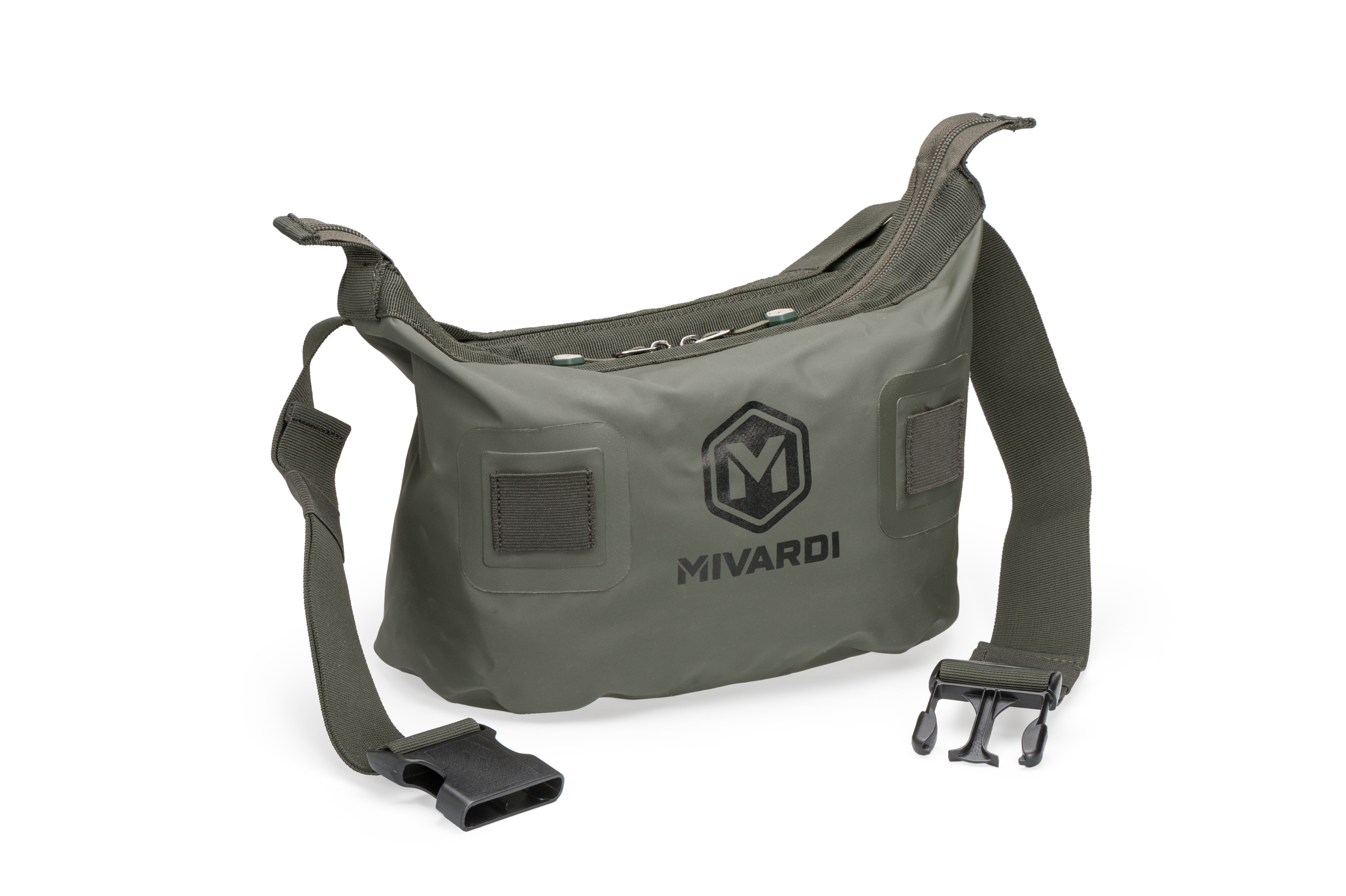 10-01-2025 - A sealable waterproof belt bag with a wide adjustable strap fitted with a heavy-duty buckle. It is designed to be filled with bait and then fastened around the waist. It is equipped with a very durable heavy-duty zipper with two pulls and practical elastic loops for attaching a slingshot or throwing stick. The reinforcements placed at the top reliably hold the shape when open, allowing for easy scooping of bait.