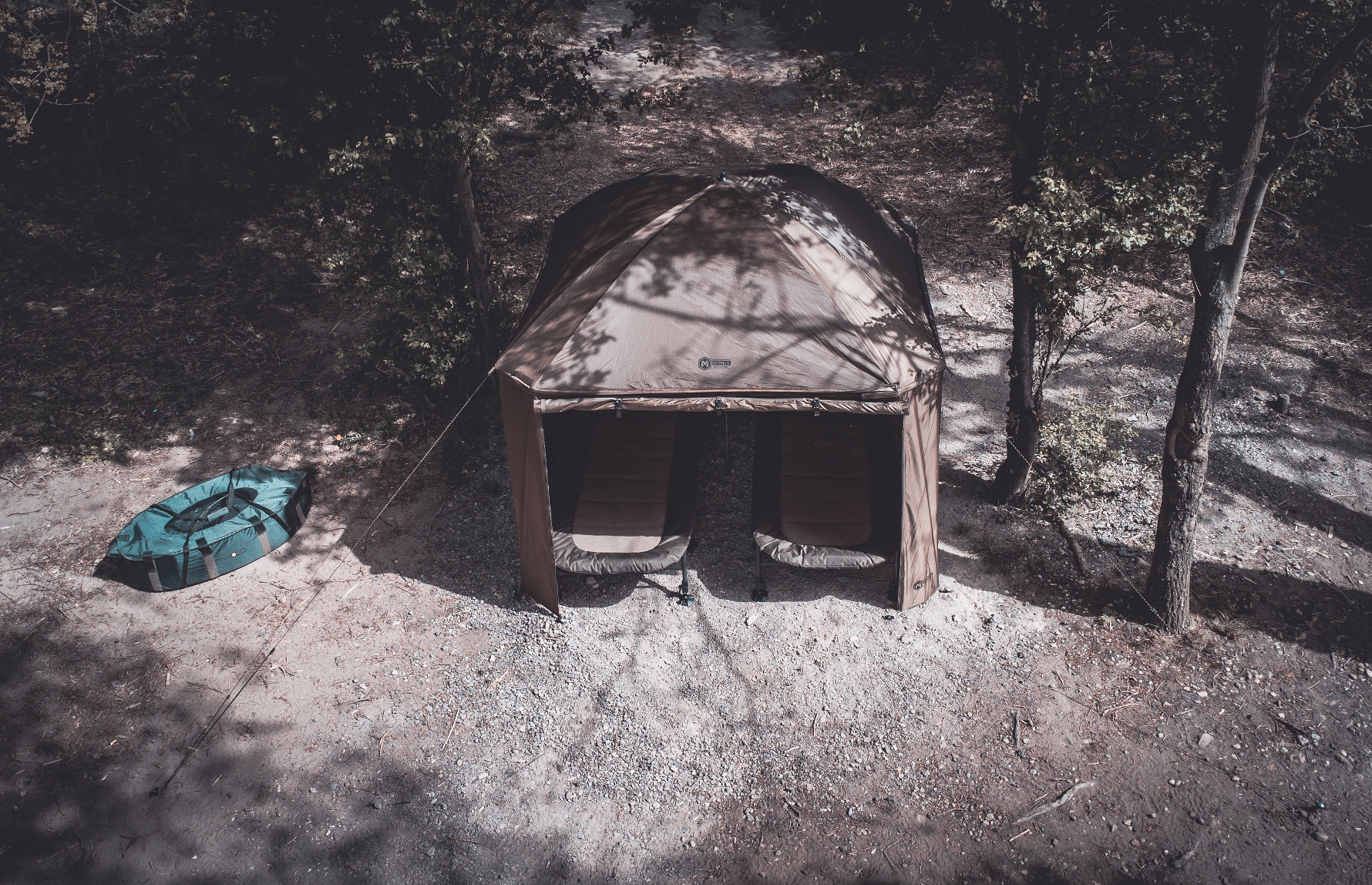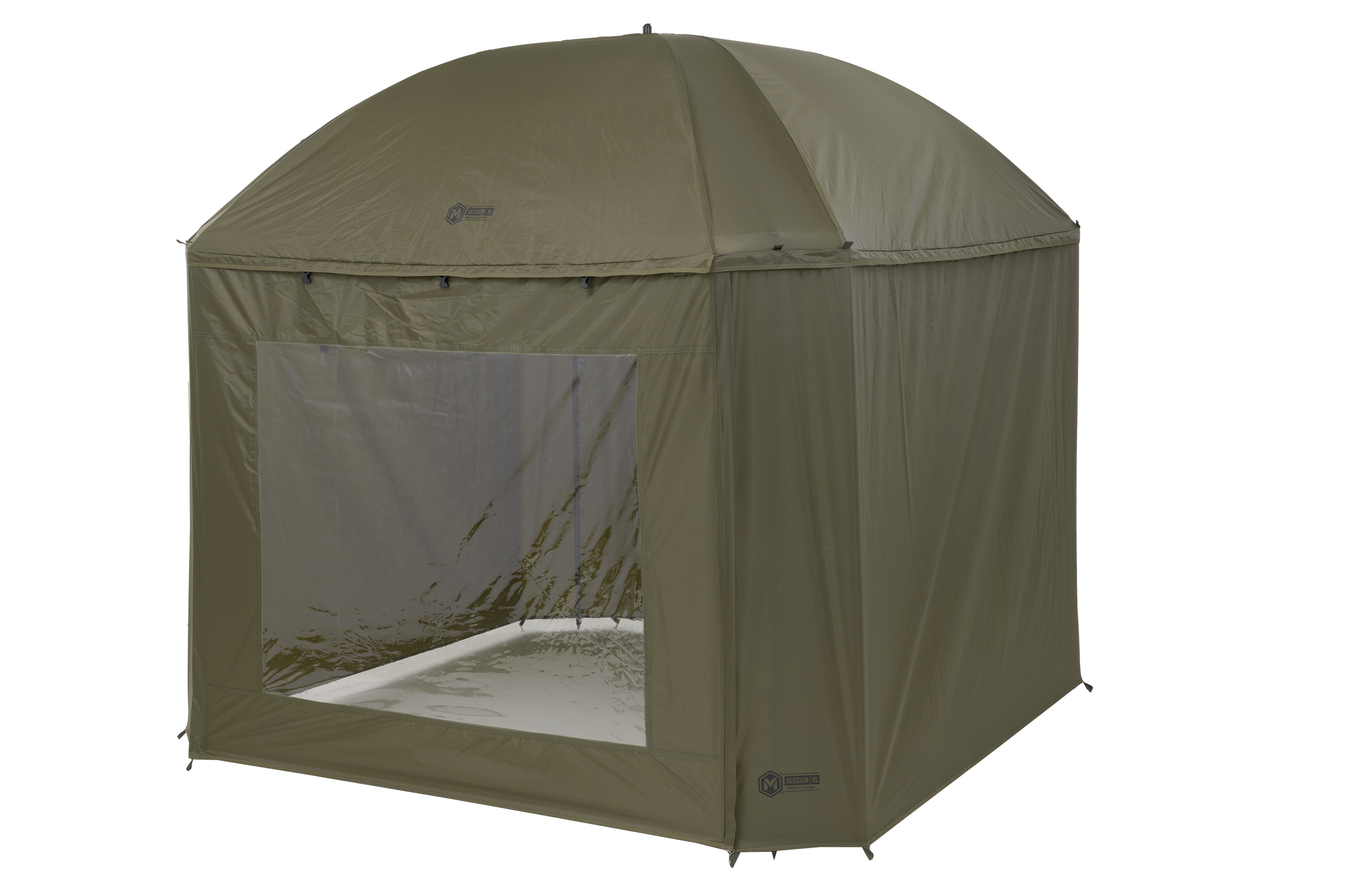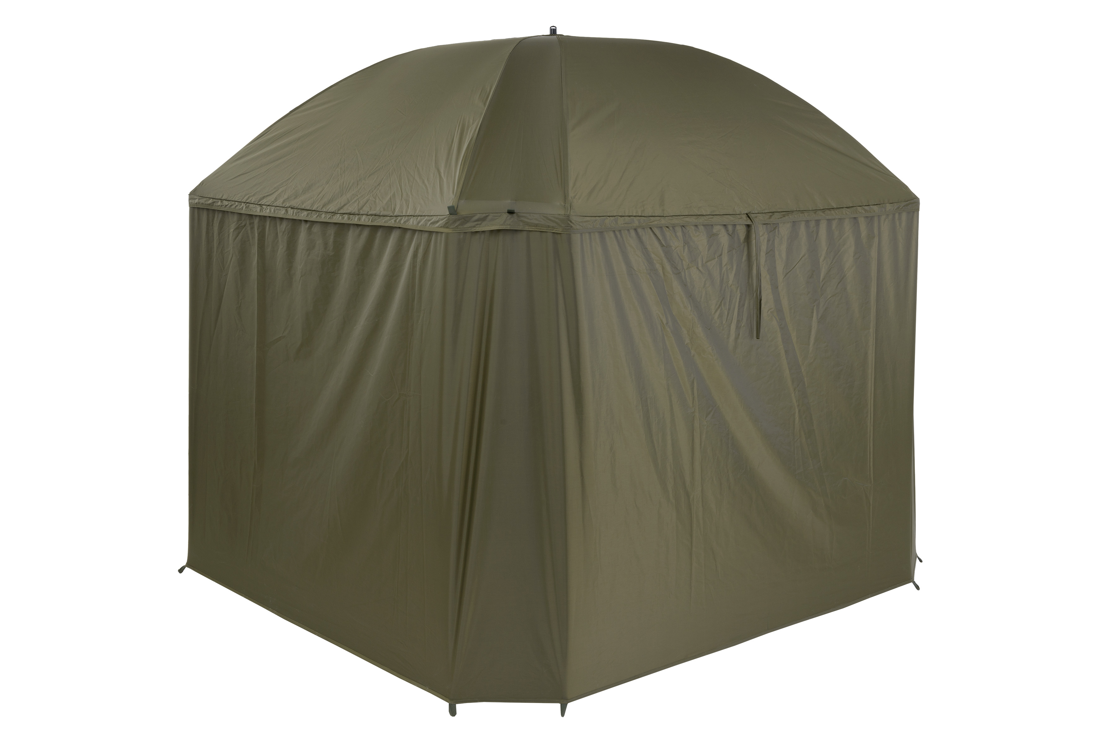 15-08-2025 - A fully covered, square-shaped umbrella of giant proportions. It can accommodate two large bedchairs. The dimensions of the umbrella are fully accommodated by its design and the materials used. The frame is made of sturdy and flexible fiberglass ribs, which, in addition to high rigidity and stability, ensure great durability. This is particularly appreciated in strong winds, when standard wire ribs would be deformed or completely destroyed. The high-quality nylon canopy offers very low weight, an uncompromising water column of 8000mm, and completely taped seams. The side panel is attached all around with a robust zipper, covered by a drip edge. The front panel, featuring a large window, can be easily unzipped and rolled up. In windy conditions, the umbrella can be stabilized using four anchoring ropes. This umbrella comes with a set of heavy-duty bivvy pegs for perfect anchoring even in difficult conditions. A great addition to this umbrella is a unique stabilization kit for extreme conditions, available separately.