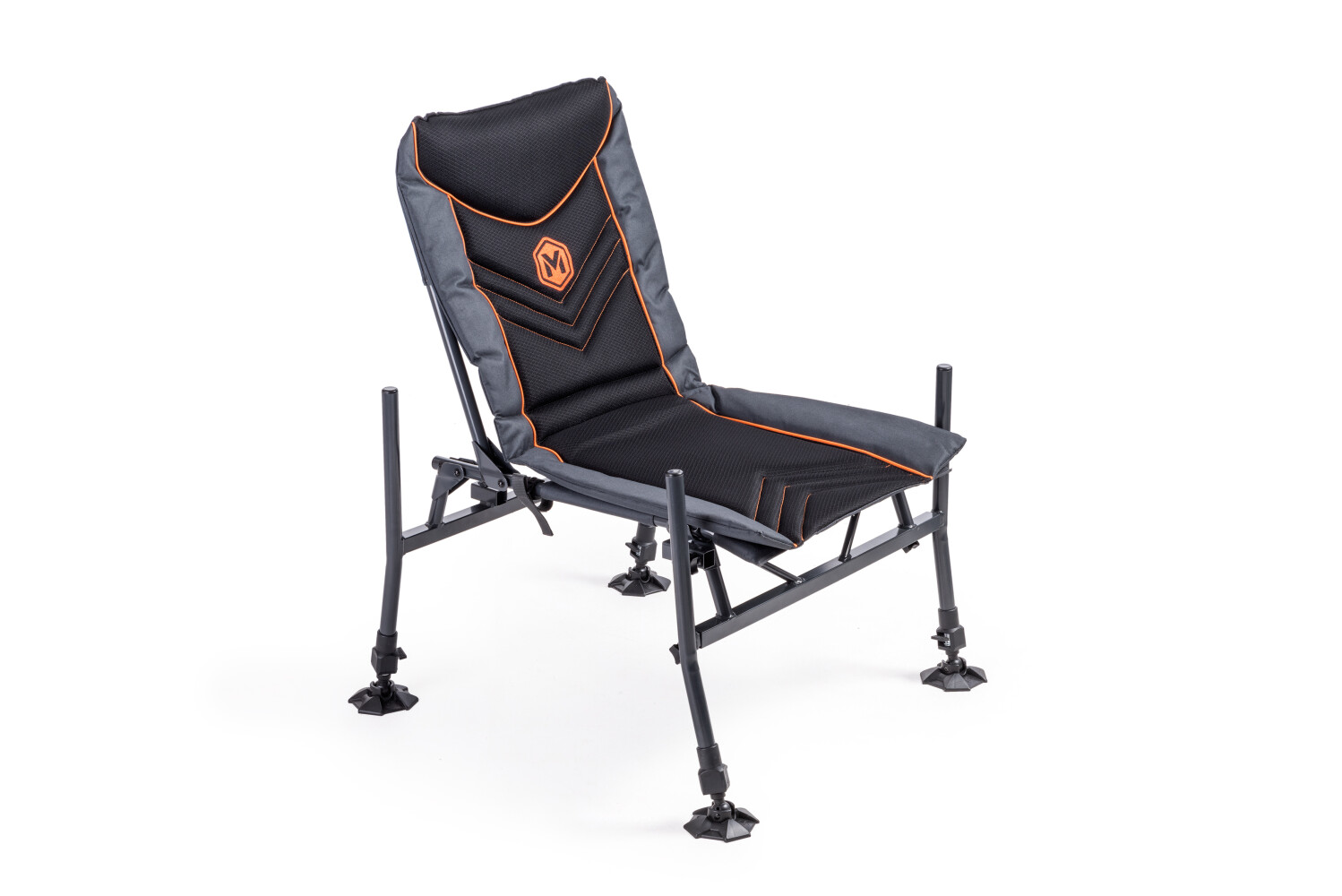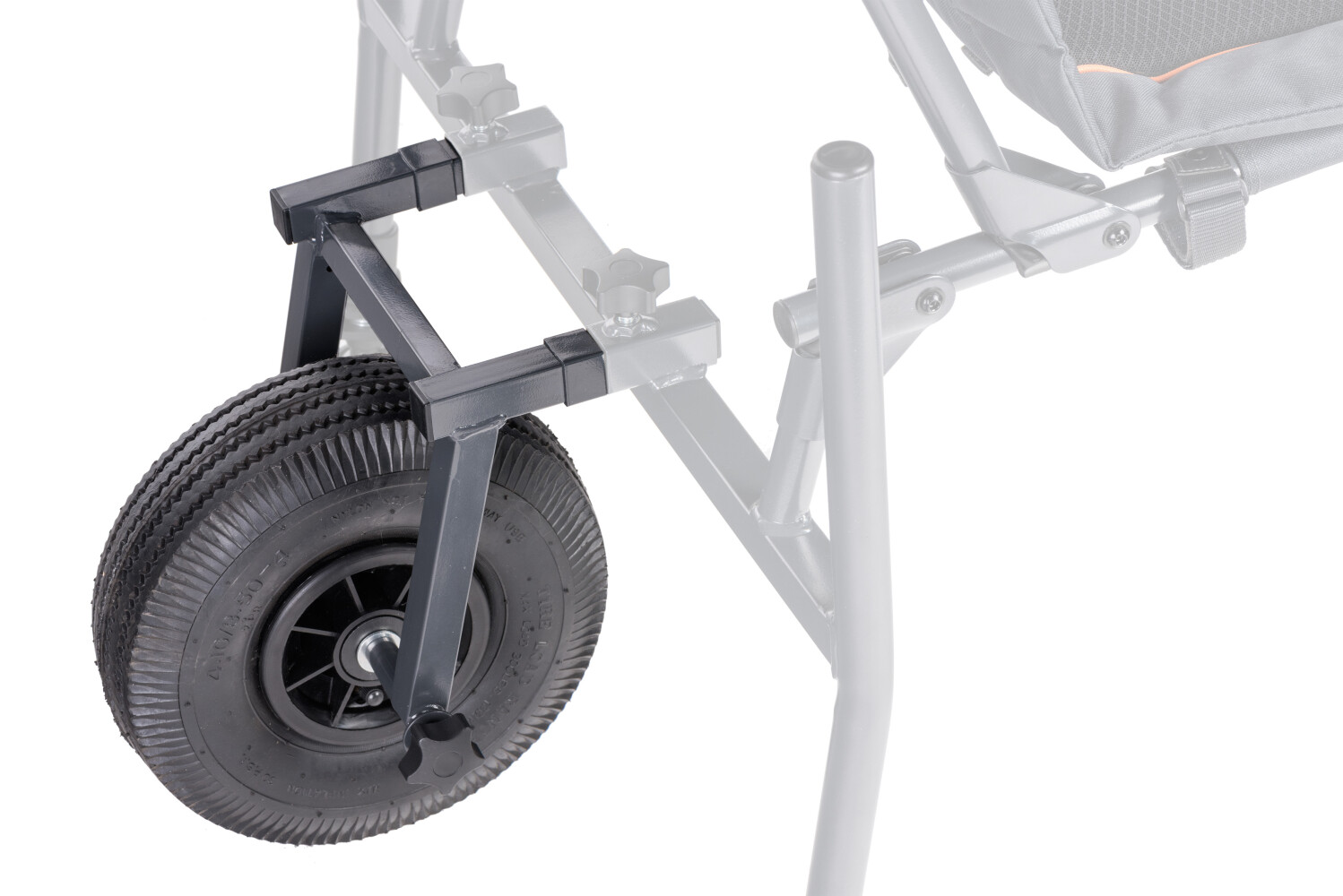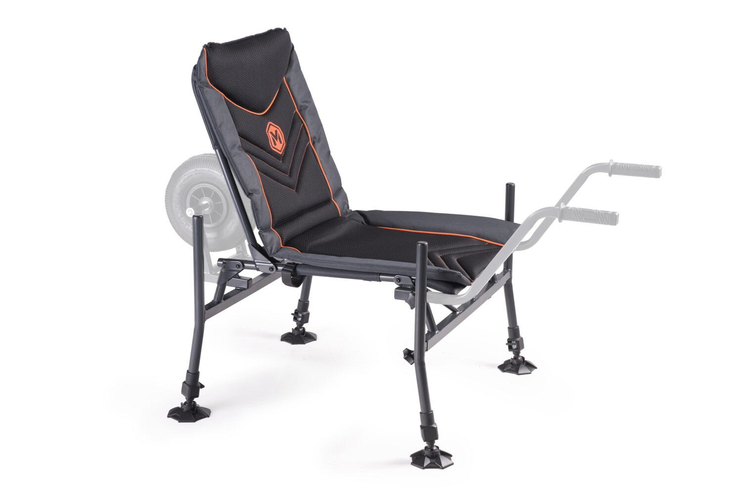 03-06-2025 - Special chair for feeder fishing. It is equipped with four telescopic legs for easy positioning on uneven banks. The legs have a diameter of 25mm and therefore allow the attachment of a variety of accessories that are suitable for this diameter. The front legs can be extended outward for increased stability. The anatomically shaped mattress is supported by a frame that follows the body's contours, while the carefully selected padding provides excellent comfort even during long sessions. This chair can be optionally upgraded with a unique transport system (sold separately), which transforms it into a stable trolley within seconds—perfect for comfortably carrying all your gear.