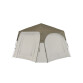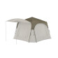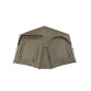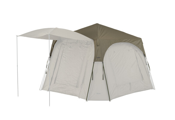 A compact overwrap for the Base Camp XXL shelter. It is attached directly onto the shelter without a need for additional pegs. Adjustable straps allow the overwrap to be tensioned thoroughly, which further enhances the overall stability of the shelter. The overwrap is made from M-TEC300 material with a hexagonal texture, increased mechanical durability, and a 10,000 mm water column rating. It covers the roof and part of the side walls while maintaining full access to all windows and detachable side panels. Using the overwrap significantly improves the comfort of the shelter, eliminating condensation and reducing overheating in direct sunlight. A major advantage is its very compact transport size and low weight.